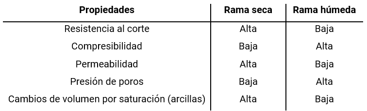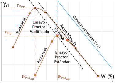 Además, dentro de estas curvas se puede identificar la rama seca y húmeda del ensayo la cual nos dará mejores o peores propiedades en el suelo según el punto de compactación en el que esté el material.