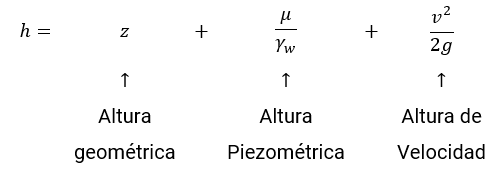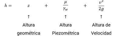 Altura Piezométrica: Esta componente tiene en cuenta la presión del agua.