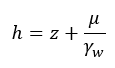 Esta ecuación nos permite calcular la altura total hidráulica (h) de un punto específico en un sistema de agua en movimiento. Compuesta por tres componentes esenciales: