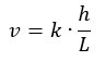 Darcy encontró que, para velocidades suficientemente pequeñas, la velocidad del agua (v) es directamente proporcional a la carga hidráulica (h) e inversamente proporcional a la longitud (L) del flujo: