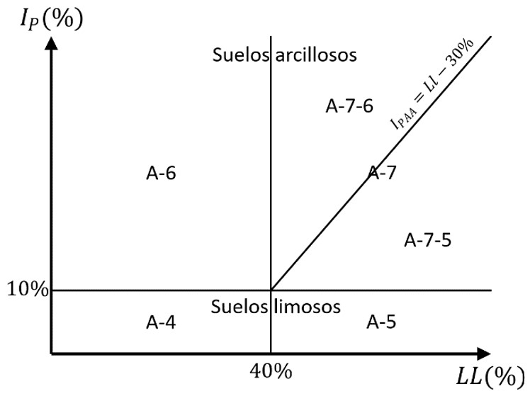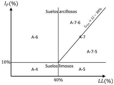 Se debe tomar en consideración que el Grupo A-7, se divide en dos subcategorías basadas en la recta IPAA. Si existe una combinación por encima de la recta IPAA, se categoriza como A-7-6; de lo contrario, es A-7-5.