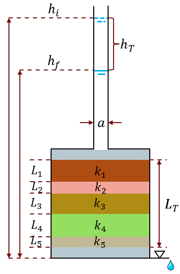 Se puede decir que el cálculo de este coeficiente de permeabilidad se hace debido a la continuidad que tiene el flujo, por lo que el caudal debe ser el mismo en todos los estratos de suelo. También se debe considerar que cada uno de los estratos de suelo genera perdida de carga hidráulica del sistema, esto quiere decir que el coeficiente de permeabilidad equivalente depende directamente de la longitud y del coeficiente de permeabilidad de cada estrato, como se muestra a continuación: