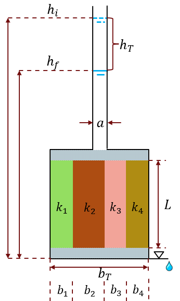Esto quiere decir, que el coeficiente de permeabilidad para esta configuración depende del ancho y del coeficiente de permeabilidad de cada estrato, como se muestra a continuación: